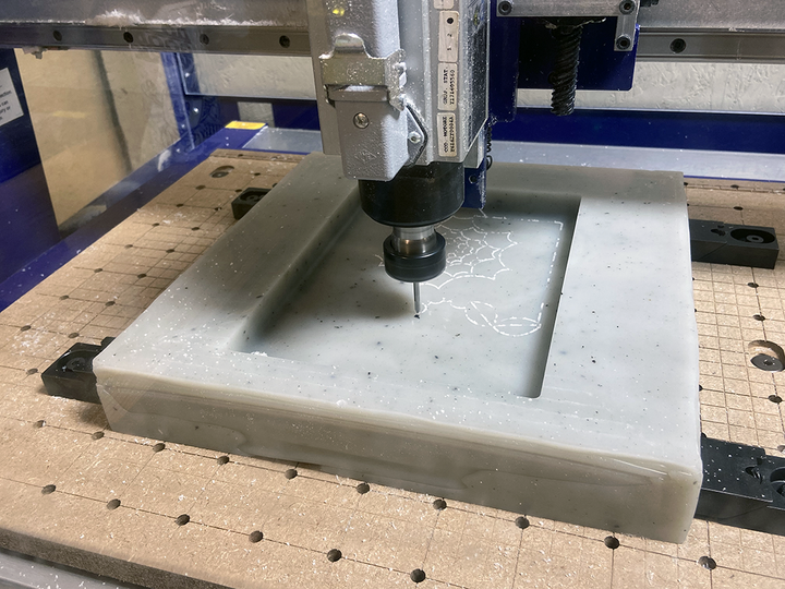 I start by setting up our wax melter—we recycle wax for molds, so that's part of the daily rhythm. I manage two CNC machines: one for wax and one for other materials like foam, acrylic, or wood. Usually, I’ll have cut files ready from the day before, so I load those, swap out tools, check the setup, and let the machines do their thing. While they run, I prep for the next day—always trying to stay one step ahead. My day ends with pouring melted wax into fresh molds so that no matter what I’m cutting we always have some on hand for the work ahead.