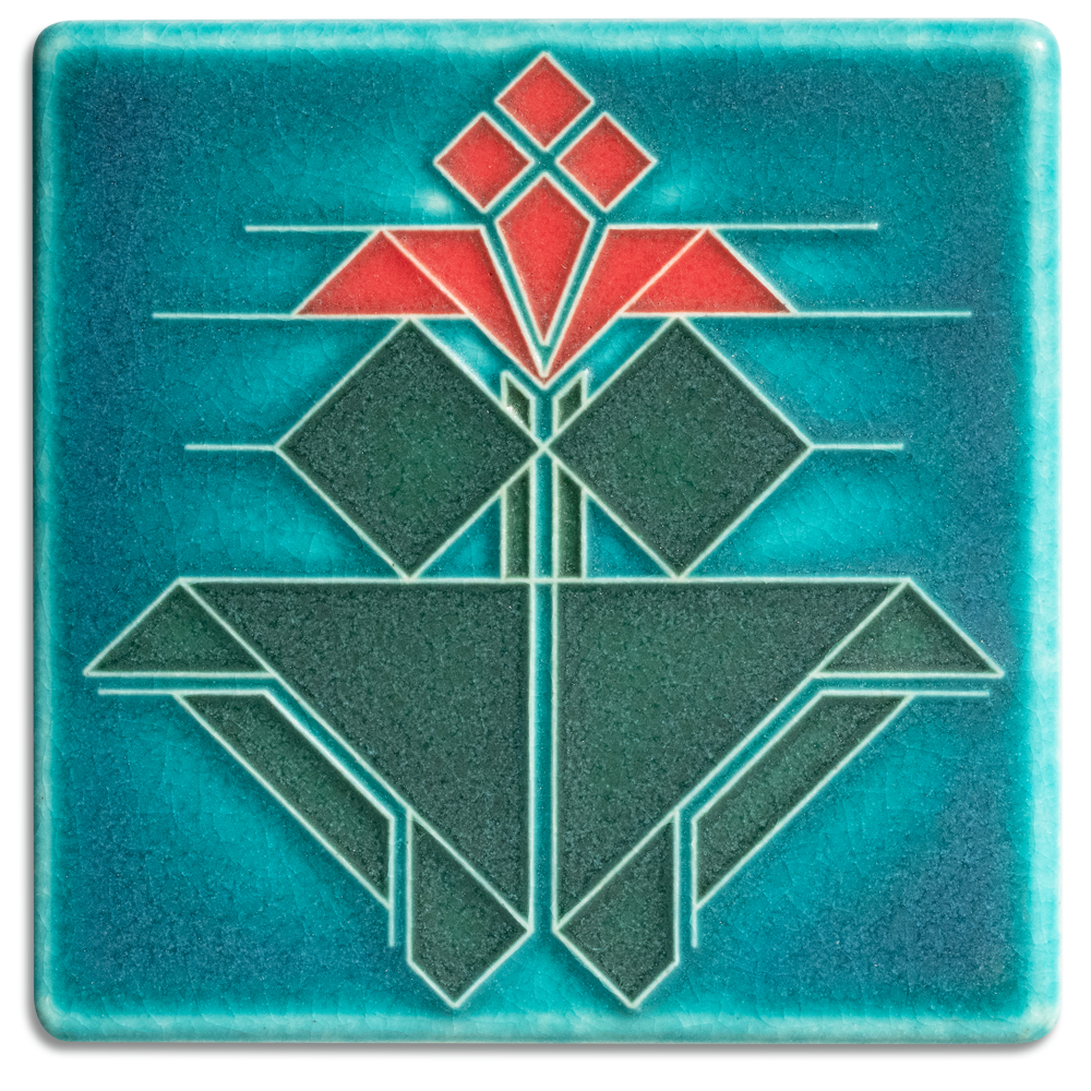 Wright’s drawing of a tile frieze for the Coonley House was the basis for Motawi Tileworks’ 4x4 Avery Tulip art tile. While the drawing was never executed on the house, the design remains an early example of Wright’s geometric nature abstractions.
