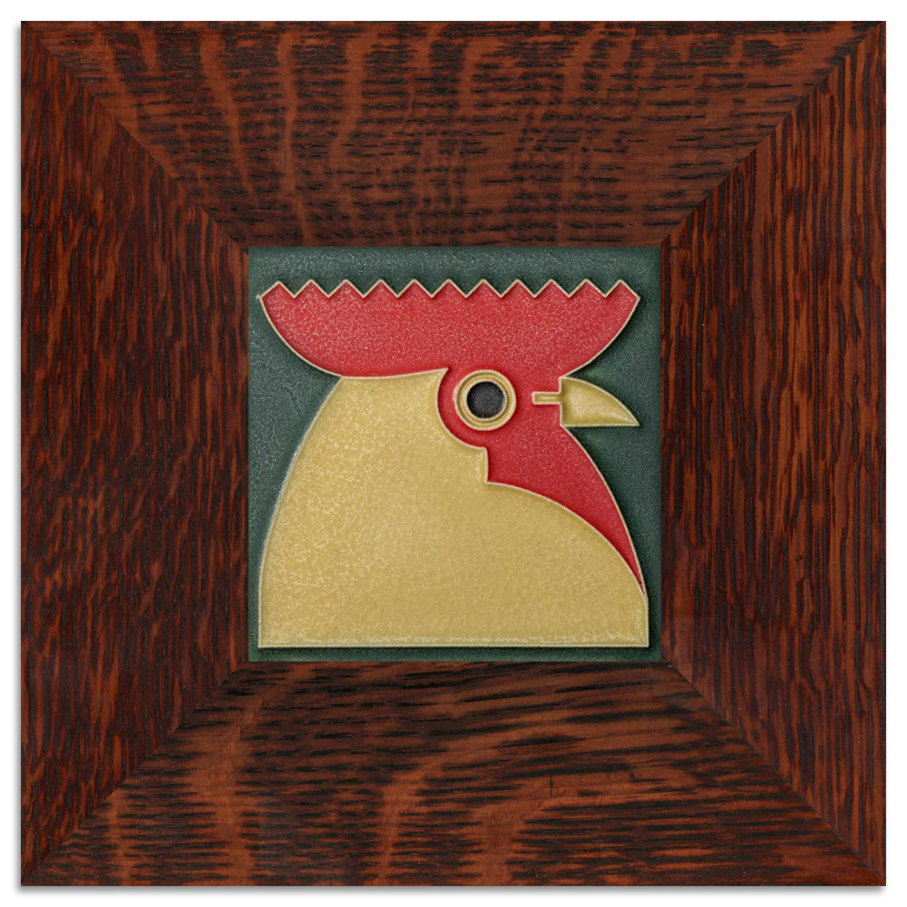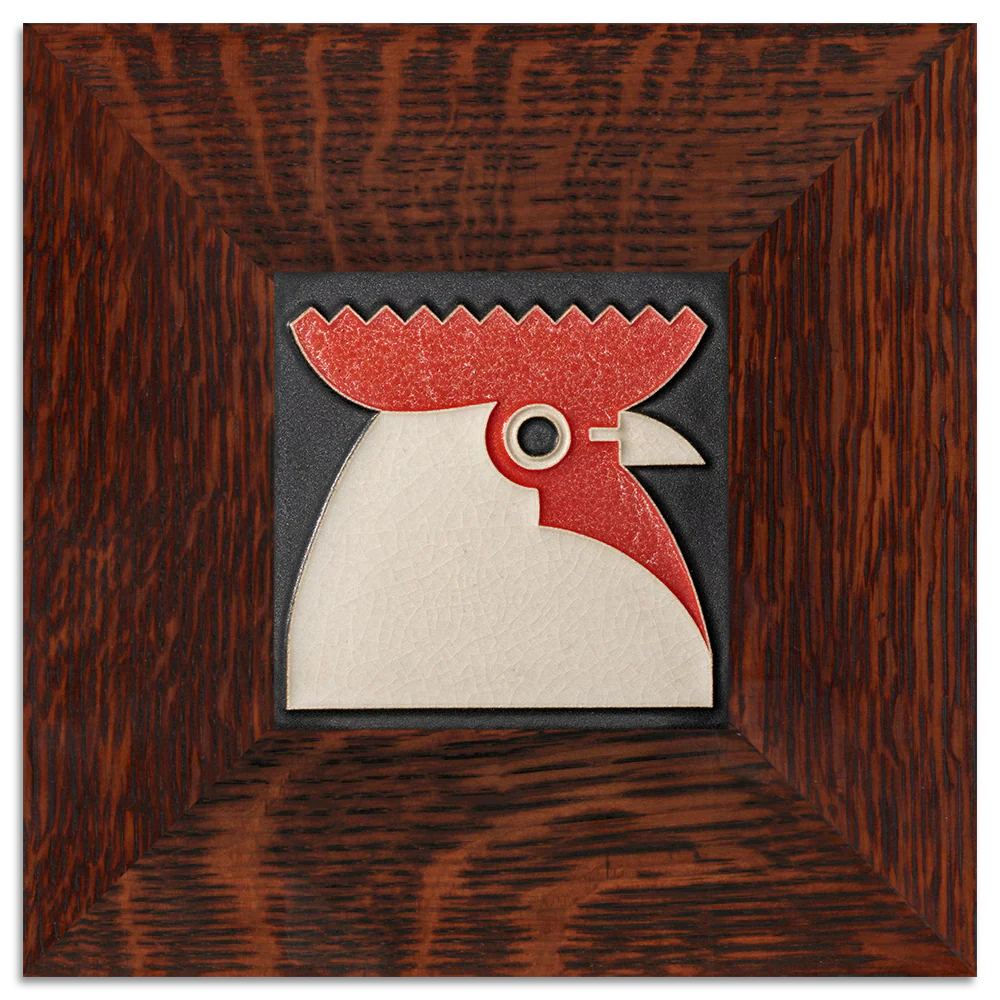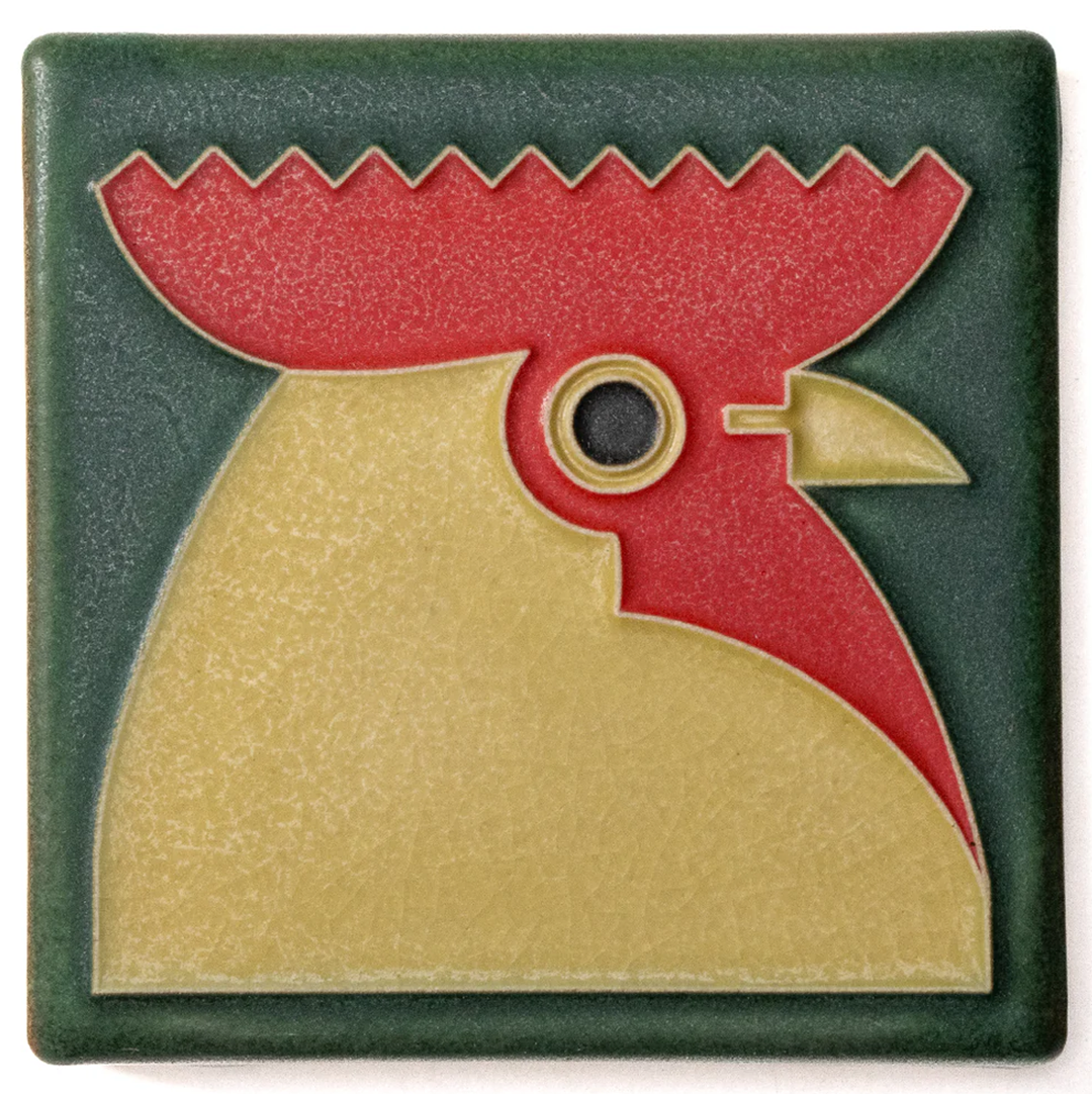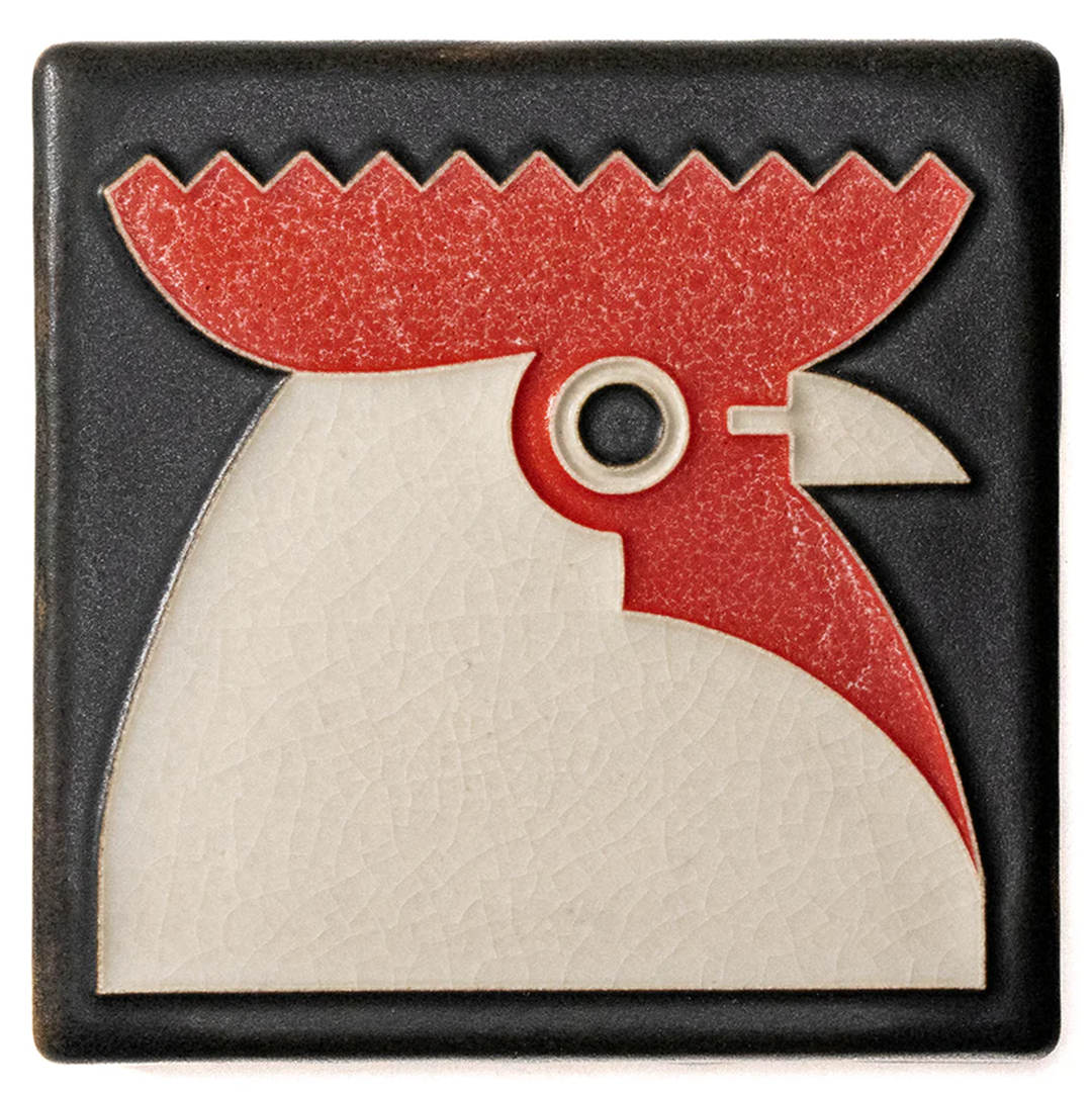 Bold, proud, and brimming with personality—this Rooster tile has enough charm to wake up any space. Inspired by the work of German graphic artist Carl Ernst Hinkefuss (1881-1970), this eye-catching design captures the charm and energy of a barnyard icon in Motawi’s signature raised-line technique.