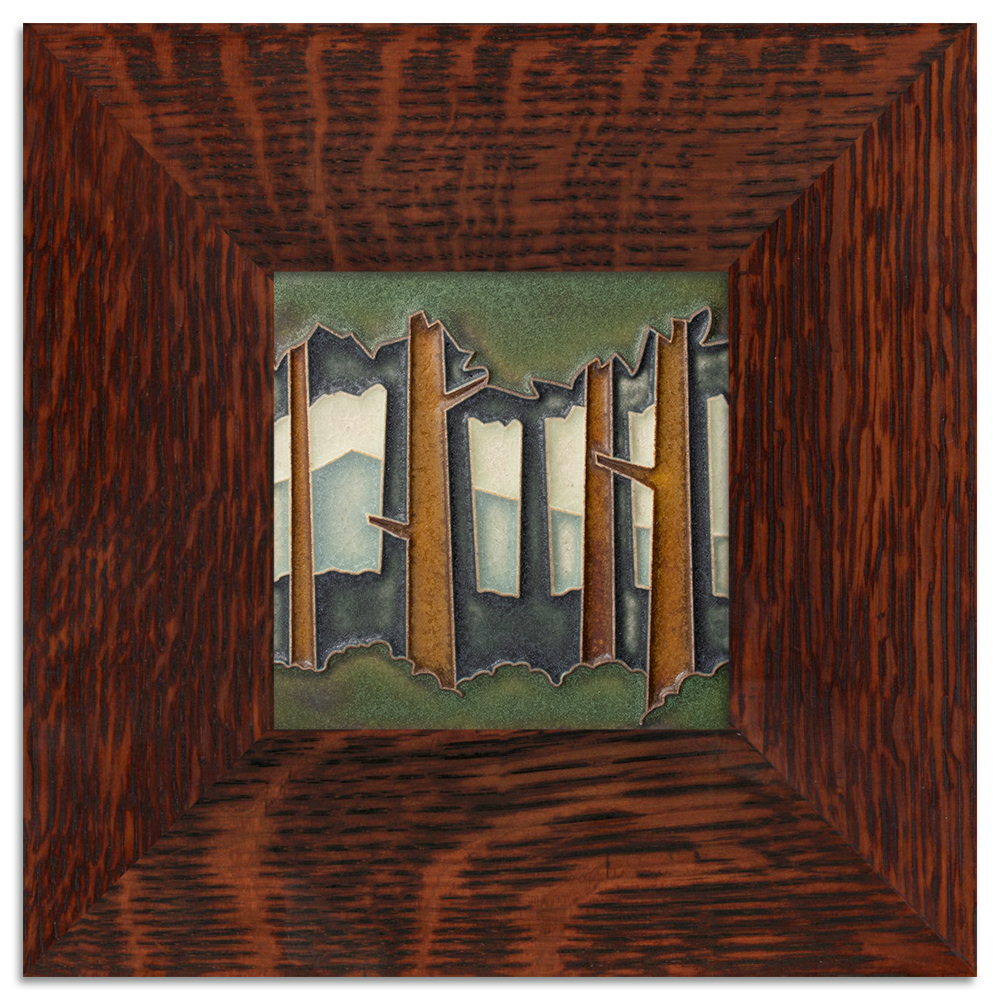 Our quarter-sawn oak frames, handmade by Dard Hunter Studios, are available with a natural Oak or Ebony finish. They can hang horizontally or vertically, or perch on our large easels. Frame features include mitered corners and stapled joints.