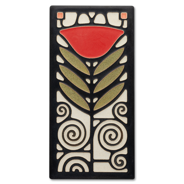 This tile was adapted from an art glass window that Dard Hunter designed for the Roycroft Inn in 1906. William Joseph "Dard" Hunter (1883-1966) was primarily devoted to the study of papermaking. His designs for the Roycroft community in East Aurora, New York, helped define the Arts & Crafts movement in America. His art and design has been an ongoing inspiration to us.
