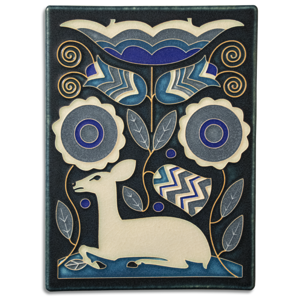 6x8 Vienna Woods is based on Carl Otto Czeschka’s “Waldidyll (Forest Idyll),” originally created as a textile design and produced by Vienna’s renowned Wiener Werkstätte artist community circa 1910. Long before it inspired a Motawi tile, this work of art was worn as a caftan by Austrian painter Gustav Klimt.