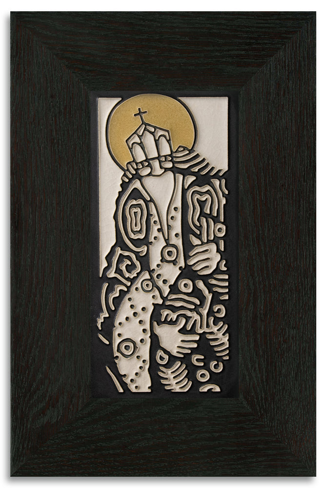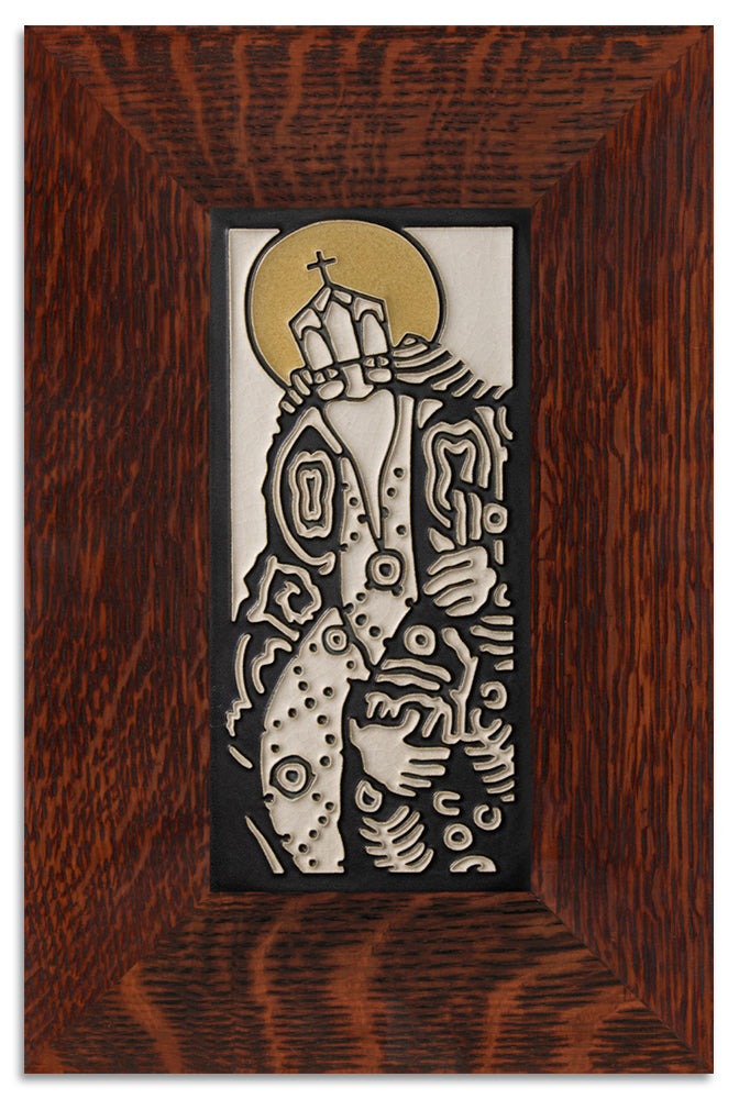 Our quarter-sawn oak frames, handmade by Dard Hunter Studios, are available with a natural Oak or Ebony finish. They can hang horizontally or vertically, or perch on our large easels. Frame features include mitered corners and stapled joints.