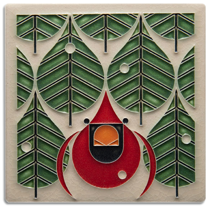 Watch out, he's coniferous! Artist Charley Harper's wintry version of his iconic cardinal is a Motawi favorite.