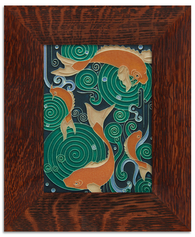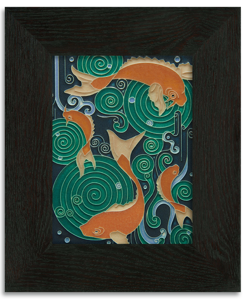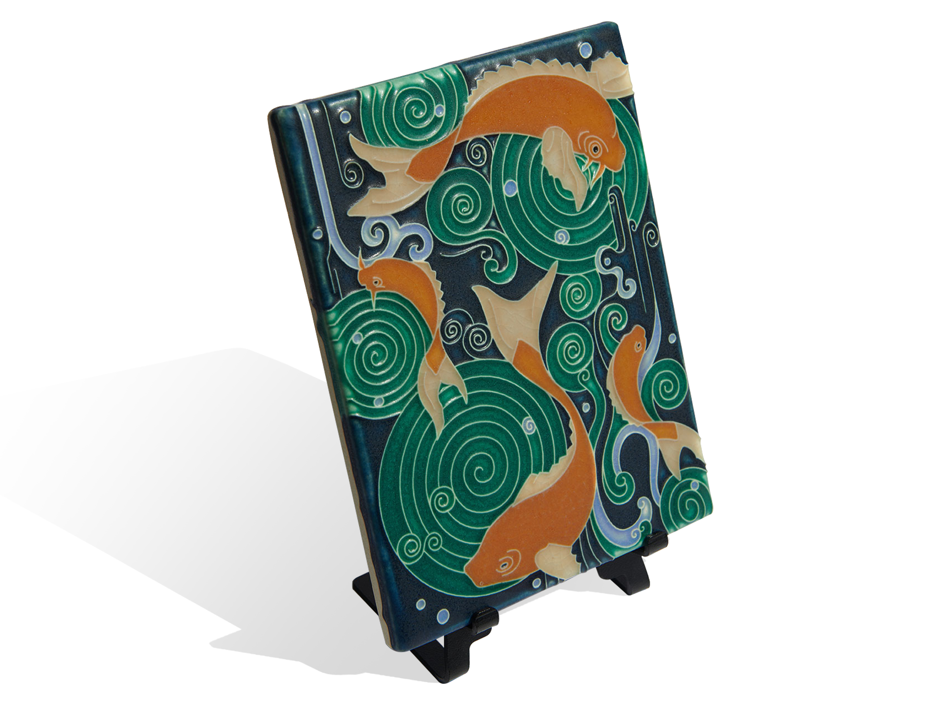Our graceful Koi Pond tile is a scaled adaptation of a larger mural originally designed for the Grand Rapids (Michigan) Art Prize competition. The response to the mural was so overwhelming that Nawal Motawi decided to create a smaller tile for production.