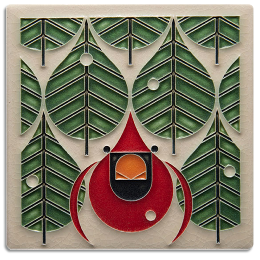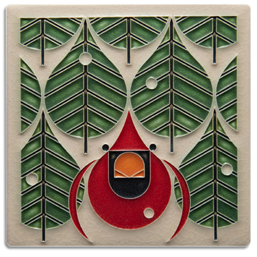 Watch out, he's coniferous! Artist Charley Harper's wintry version of his iconic cardinal is a Motawi favorite.