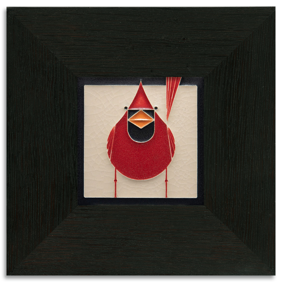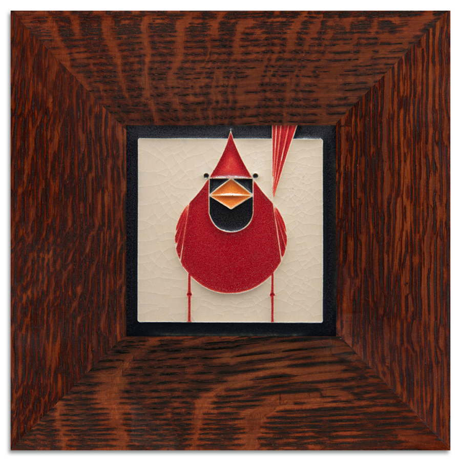 Mid-century modern meets Motawi mastery in these tiles based on the work of celebrated wildlife artist Charley Harper (1922-2007), a self-described "minimal realist." From the Harper print "Red and Fed" (1970).