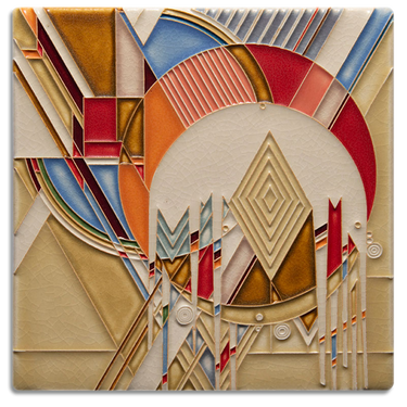 Wright envisioned “Frozen Spheres” as the wintry cover art for the magazine’s January issue. Nearly a century later, Motawi Tileworks celebrates this study in geometry, asymmetry and color with its 8x8 ceramic art tile rendering of “Frozen Spheres.”