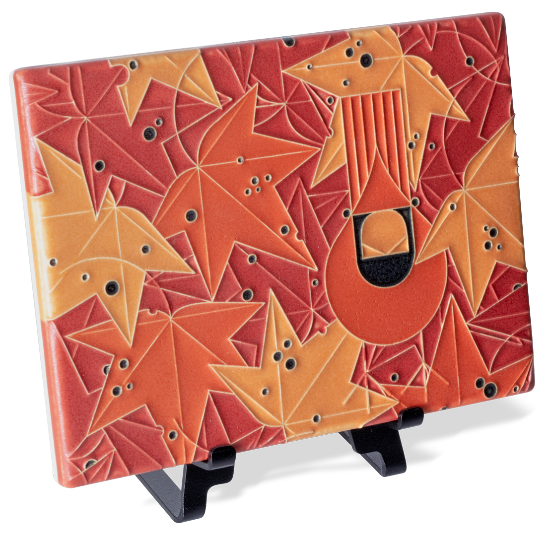 Mid-century modern meets Motawi mastery in these tiles based on the work of celebrated wildlife artist Charley Harper (1922-2007), a self-described "minimal realist." This tile is adapted from the artist's lithograph titled "Under the Sweetgum Tree."