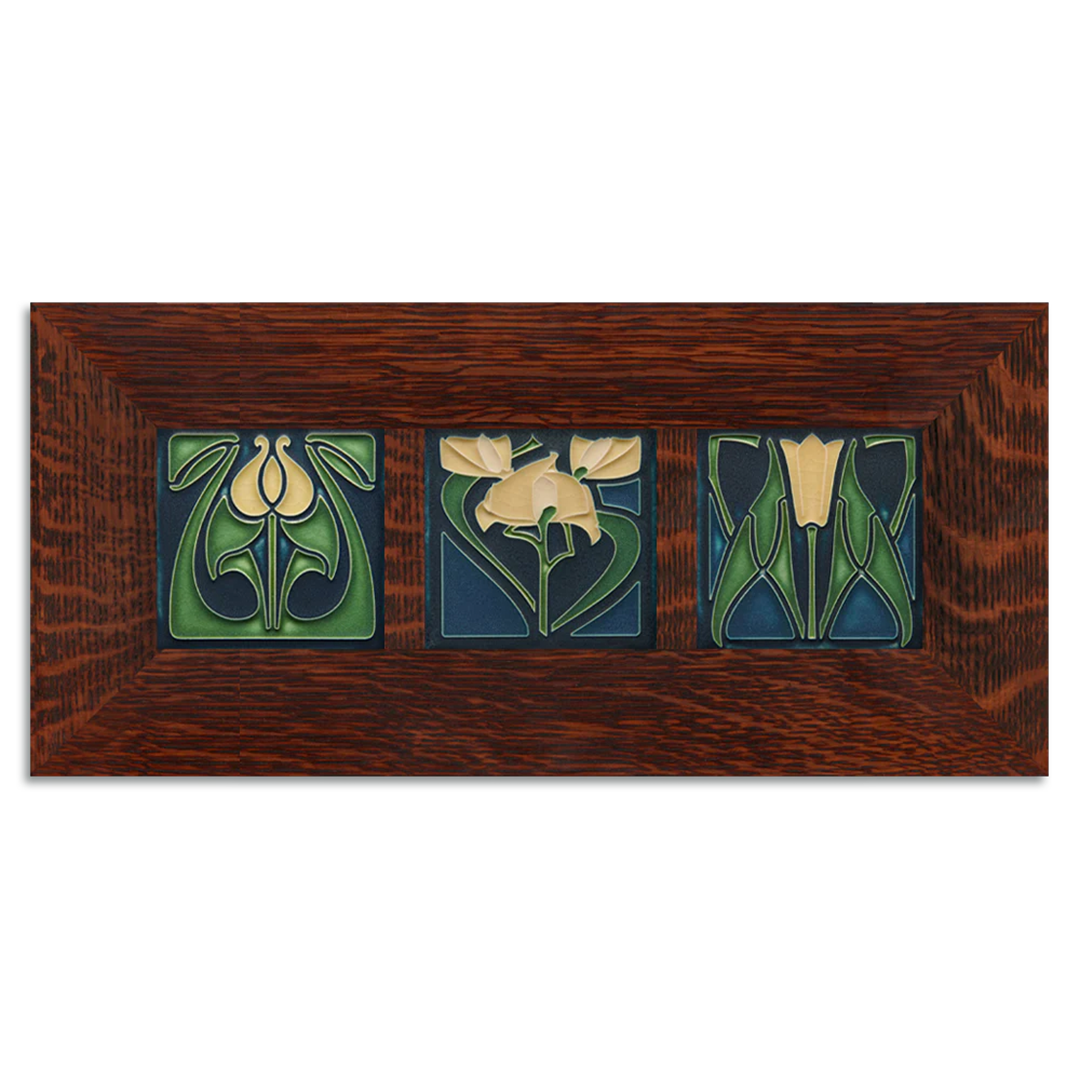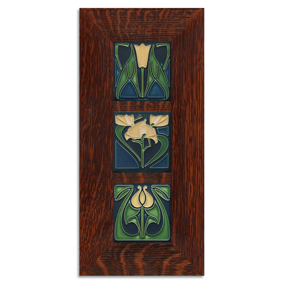 Our Arts & Crafts inspired 4x4 Floral tiles framed together create a beautiful visual harmony making this set a perfect accent for any space.