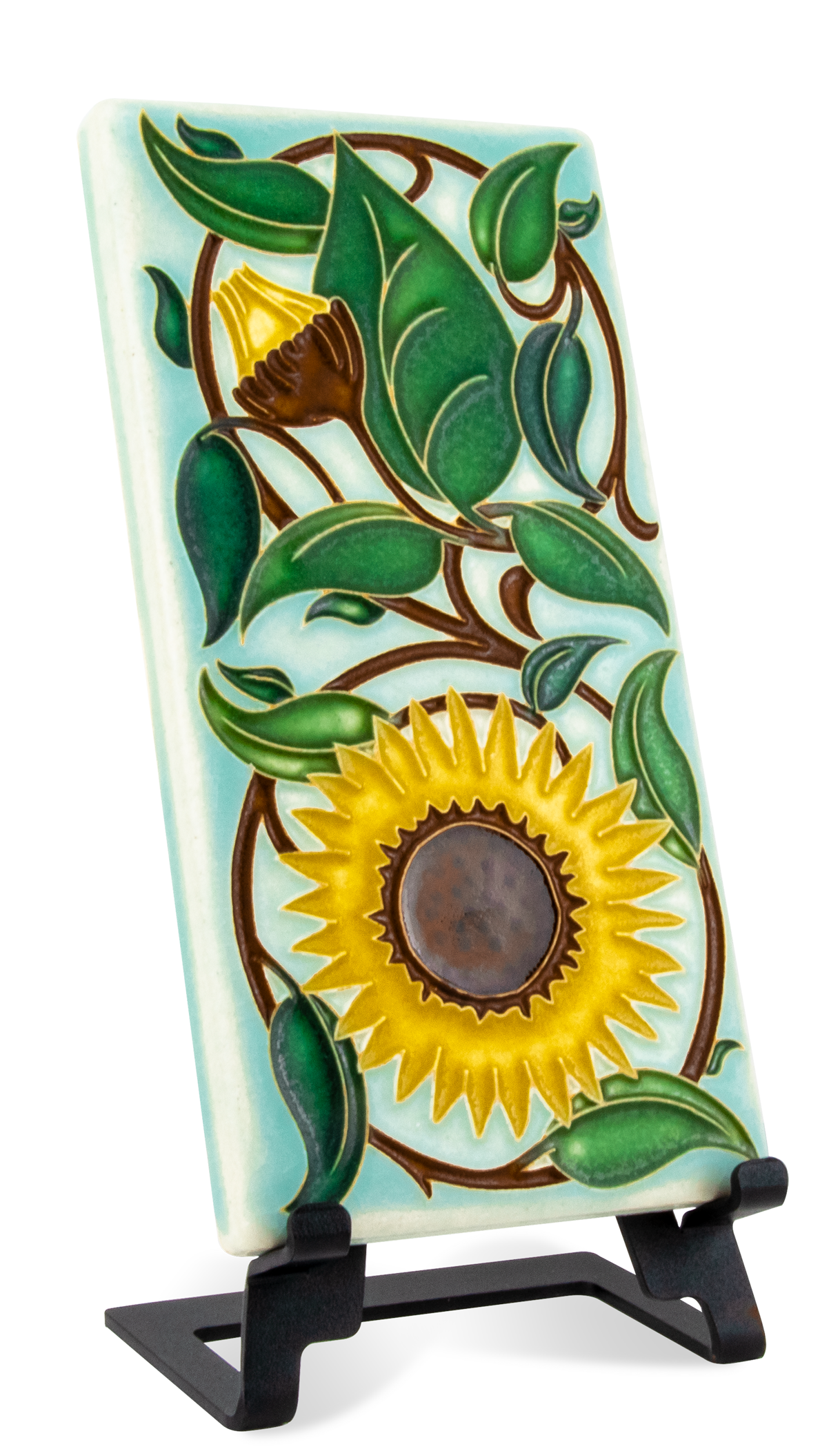 Motawi’s 4x8 Sunflower is based on an earlier handpainted tile created by English artist William De Morgan (1839–1917).
