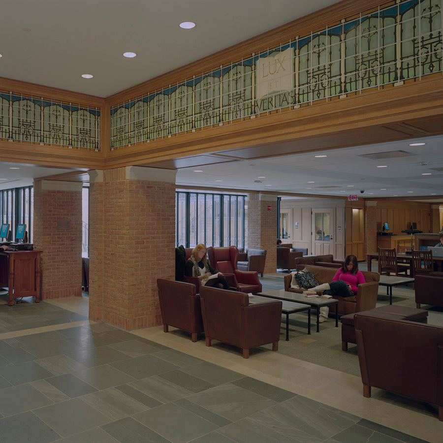 Decorative frieze mural by Motawi Tileworks at Yale University’s Bass Library
