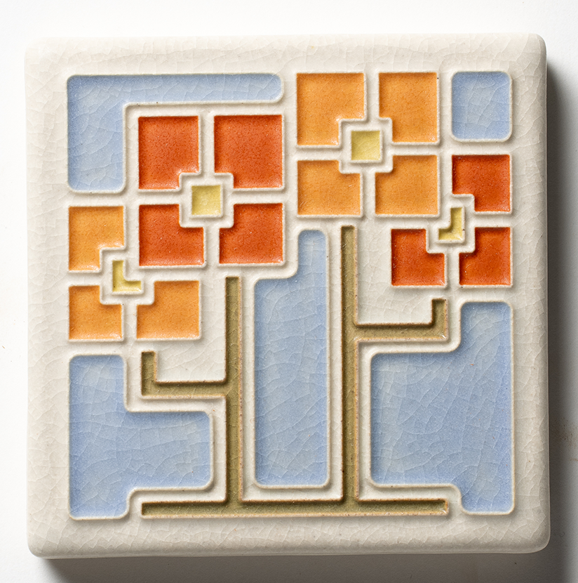 During the Saturday, August 15 workshop, glazers will work with two of our 4x4 Round Flowers and 4x4 Square Flowers tiles (now retired designs) in a striking custom colorways. Glazers will complete one 4x4 Round Flowers tile and one 4x4 Square Flowers tile.