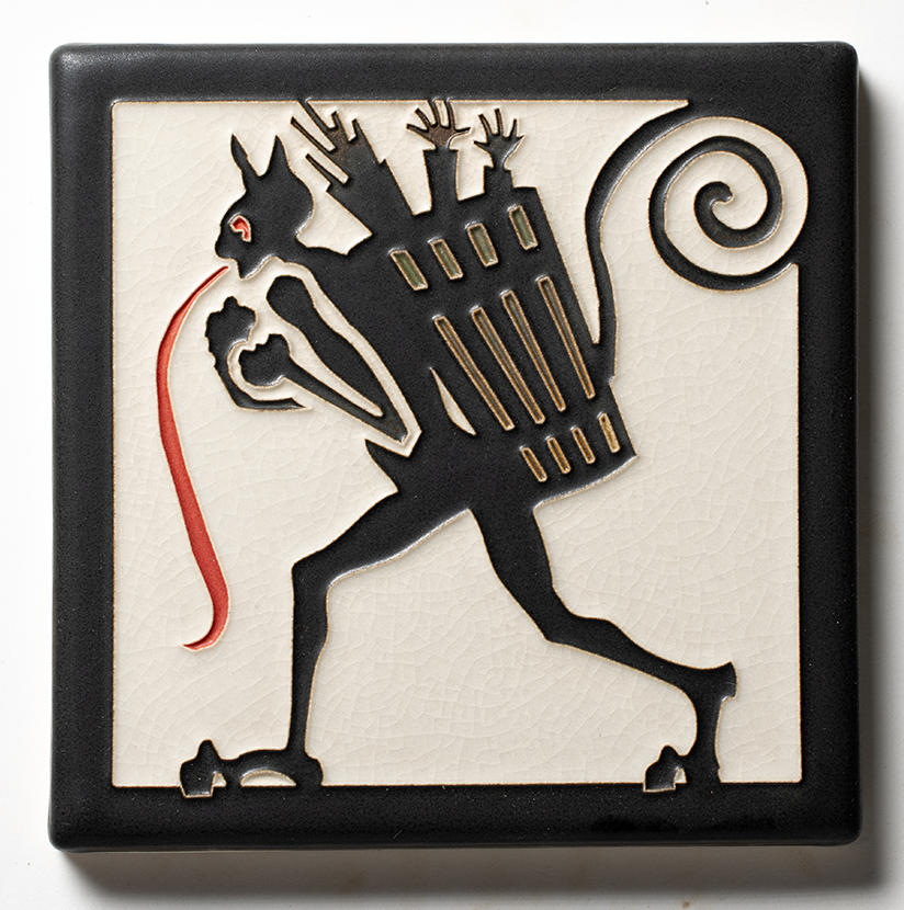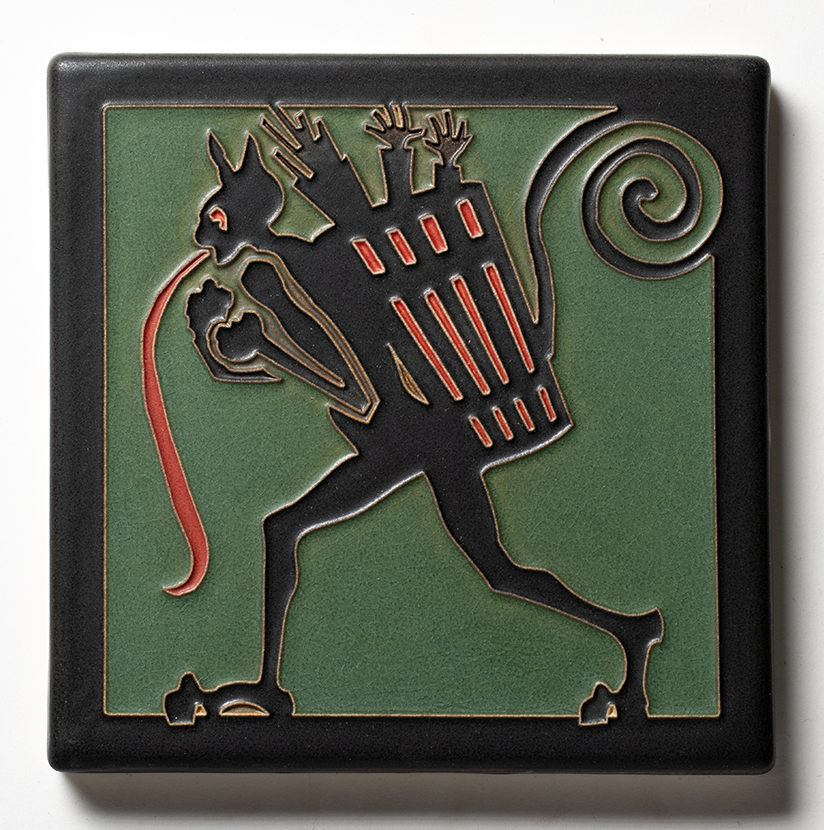 During the Saturday, October 31 workshop, glazers will work with one of our 6x6 Krampus tiles in bold custom colorways. Glazers will complete one 6x6 Krampus tile.