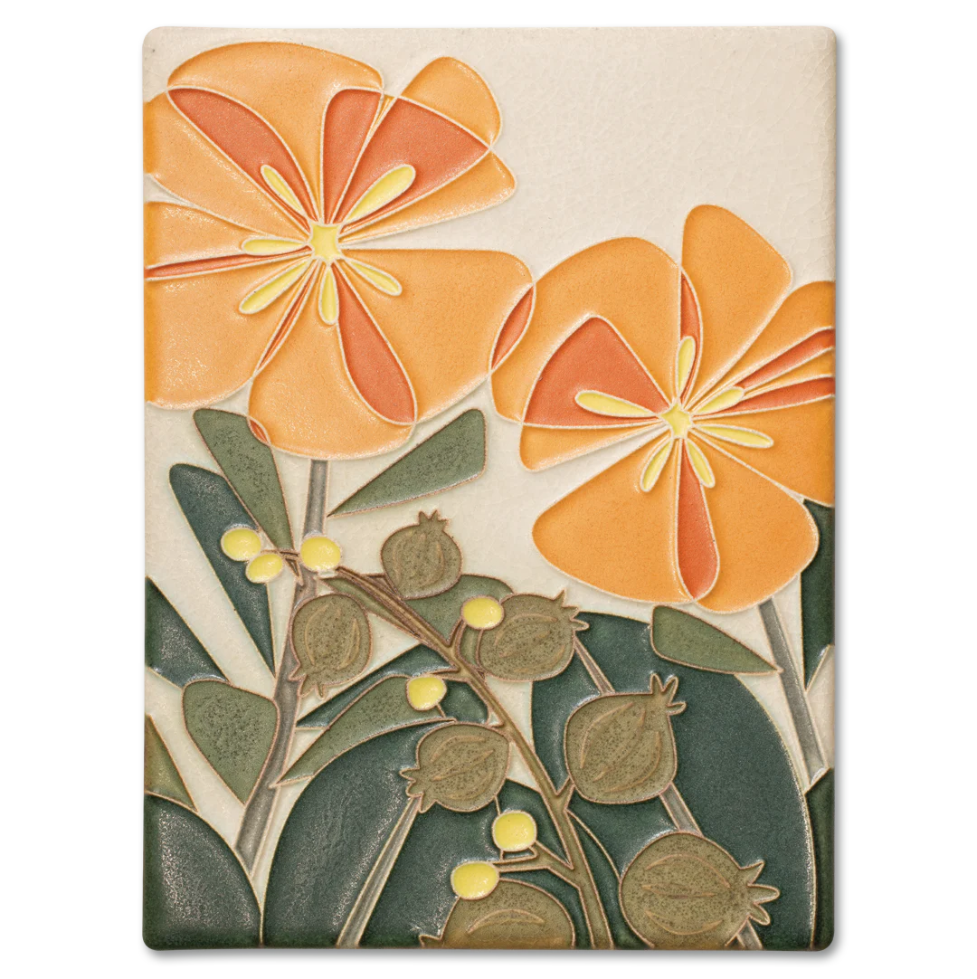 Multimedia artist Cary Phillips creates some of the dreamiest floral designs for prints and textiles, and Nawal Motawi loves adapting them for ceramic tile. Our collaboration is blooming! 6x8 Blossom Bliss joins our other popular Cary Phillips tiles, 6x8 Hummingbird and 4x8 Starry Flowers.