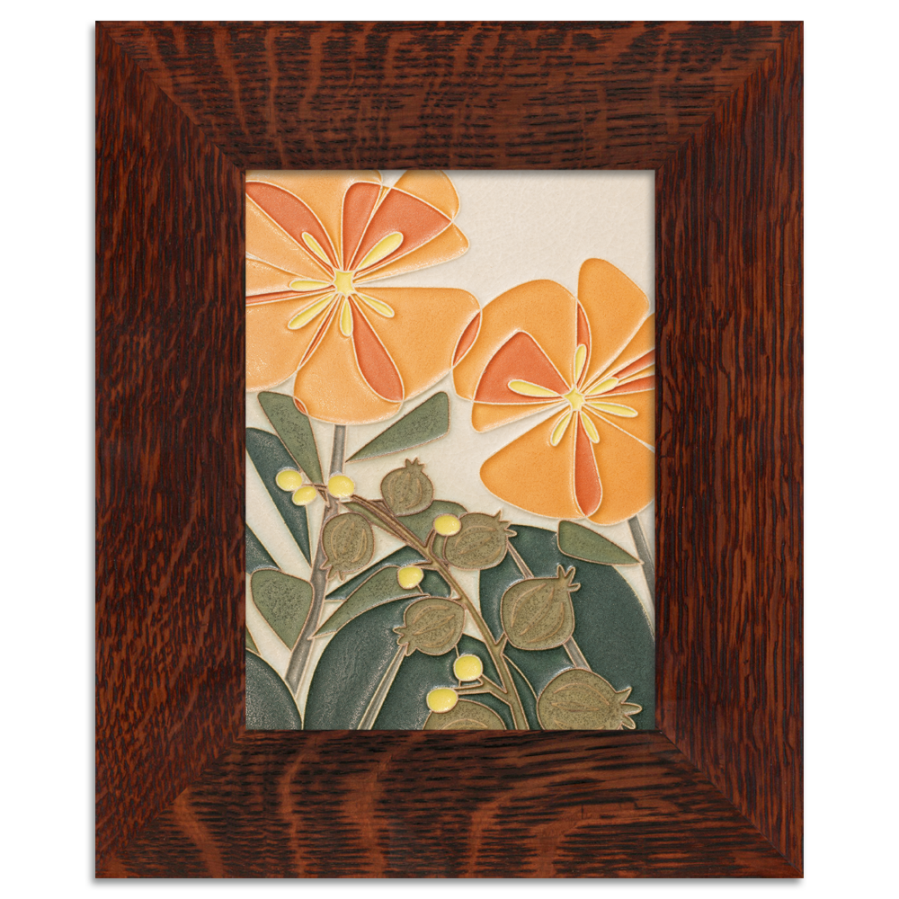 Our quarter-sawn oak frames, handmade by Dard Hunter Studios, are available with a natural Oak or Ebony finish. They can hang horizontally or vertically, or perch on our large easels. Frame features include mitered corners and stapled joints.