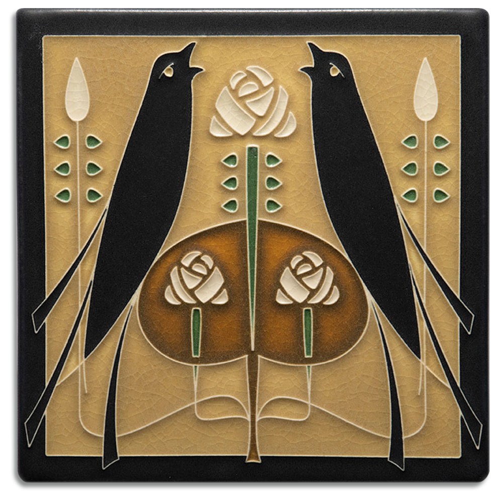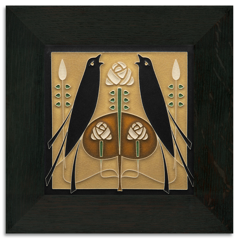 This lyrical pair was inspired by a book jacket cover by Talwin Morris, who designed for English publisher Blackie and Sons in the late 19th century. Morris was connected to Charles Rennie Mackintosh and known for his Glasgow Style.