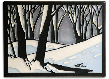 Artist Yoshiko Yamamoto is a self-taught block printmaker who strives always to fuse Japanese design sensibility with fine craftsmanship. Several years ago, Nawal Motawi, a longtime admirer of Yoshiko's work, approached her for a collaboration. Motawi thought Yamamoto's bold prints would work well as a raised-line tile design. She was right. Yamamoto's graceful, swaying scenes brought the clay to life.
