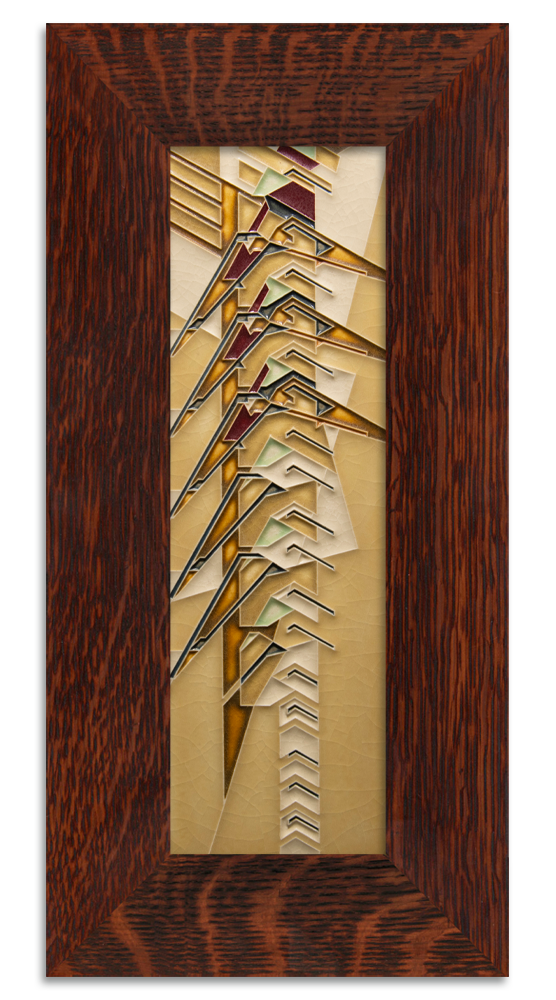 Frank Lloyd Wright (1867–1959) is recognized worldwide as one of the greatest architects of the 20th century. Wright’s John and Catherine Christian House, also known as Samara (named after a pinecone’s winged seeds), was completed in West Lafayette, Indiana, toward the end of his illustrious career. The samara seed pattern appears on Wright’s perforated board design for the house, and perhaps most prominently on a rug commissioned by Professor Christian in the 1990s and designed by Taliesin’s Aris Georges and Cornelia Brierly. That rug was the inspiration for Motawi Tileworks’ 4x12 Samara art tile, which reinterprets Wright’s pattern once again in ceramic.