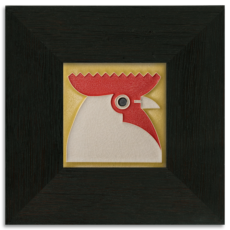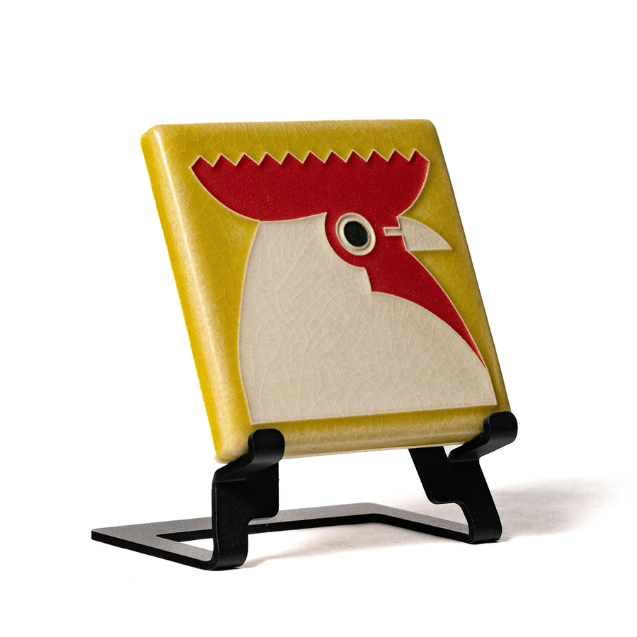 Bold, proud, and brimming with personality—this Rooster tile has enough charm to wake up any space. Inspired by the work of German graphic artist Carl Ernst Hinkefuss (1881-1970), this eye-catching design captures the charm and energy of a barnyard icon in Motawi’s signature raised-line technique.